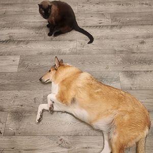 “Definitely a happy dog. I would hope for an older couple to open their home to her. She would be good for someone who just wants company around the house and give her an occasional walk. She likes to lay close to people and get lots of scratches … but is not too needy. Young kids would be good too.